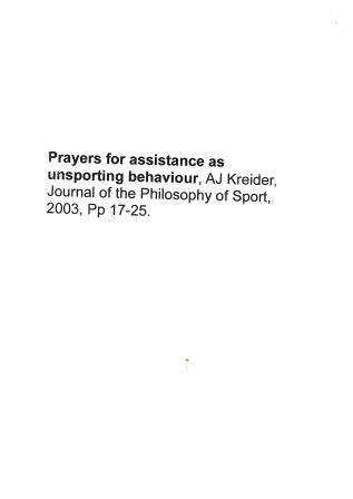 AJ Kreider, Journal of the Philosophy of Sport, 2003, Pp 17-25.